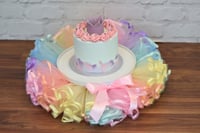 - Please confirm the print, size and style of trouser/tutu within the notes to the order. If tutu upgrade is chosen, this is a plain pink tutu. Not the rainbow tutu shown in pictures, this is a prop only.